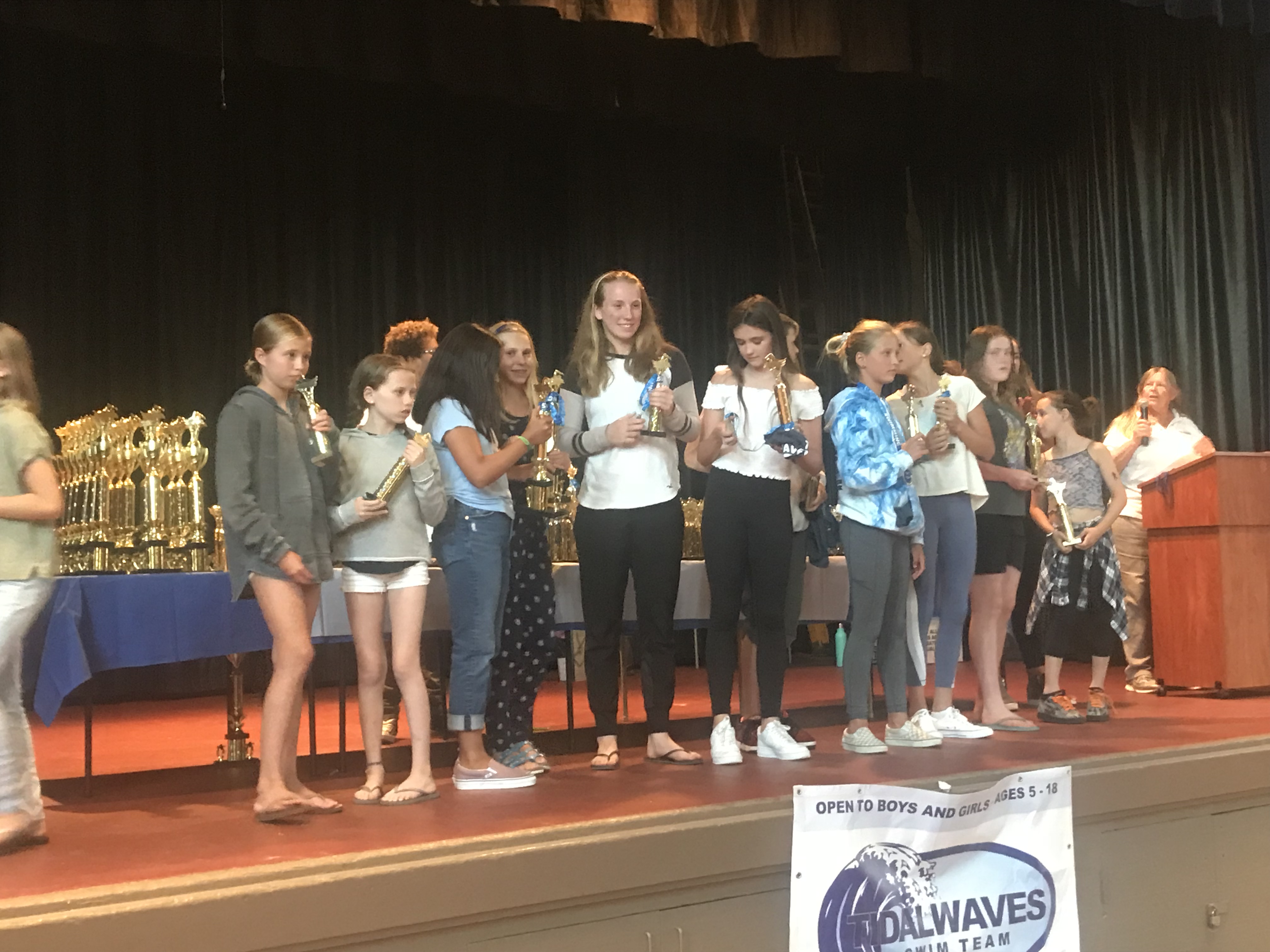 To recognize the swimmers (and their families) who demonstrate their commitment to our team by participating in every dual meet of the season plus Champs, Tidalwaves acknowledges these swimmers with a special "Waterdogs" t-shirt. These coveted shirts are presented at the end-of-season Awards Banquet and include all of the Waterdog swimmers' names on the back. These shirts are prized possessions for the kids and we are so very inspired by, grateful for, and appreciative of the team spirit of these swimmers.