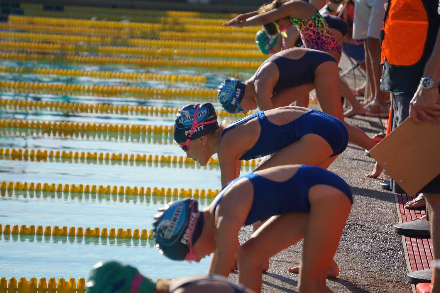 If you forget, there are volunteer age group coordinators who will write this information on your swimmers hand before the meet. Age group coordinators are also present at each lane to help the swimmers line up for their races.