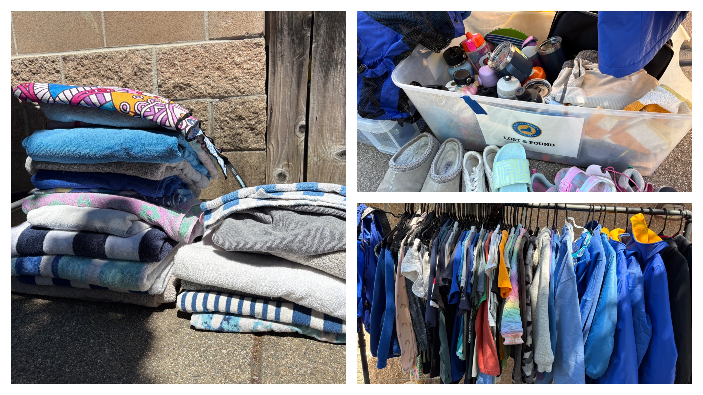 Lost and Found is being donated to the Goodwill on Wednesday. Please come by on Monday and Tuesday to claim your towels, t-shirts, shorts, and suits! All lost and found, with the exception of SHST gear, will be taken to the Goodwill on Wednesday.