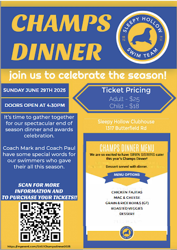 And lastly, our own Sleepy Hollow Champs Dinner will be held on Sunday, June 29th. Doors open at 4:30pm. This very special evening is a time for our entire team and their families to gather and celebrate our amazing season with great food, awards, and our end of the season video! Tickets for this event are available for purchase now (here).
