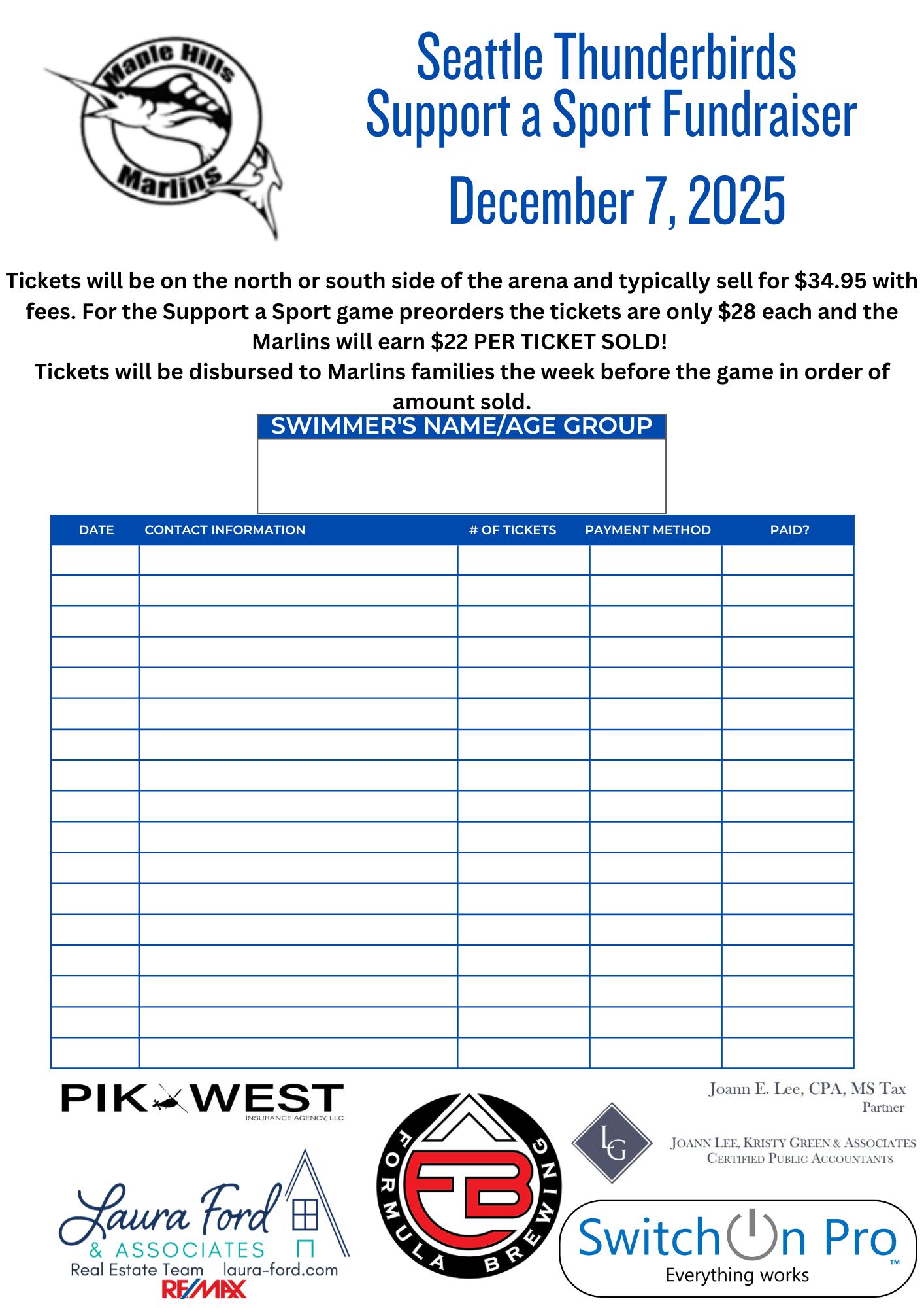This is our largest fundraiser this year and we hope to earn $7000 for our swim team! If every swimmer on the team commits to selling 4 tickets we would raise over $10,000!