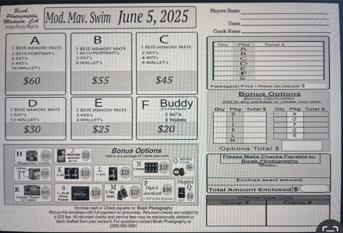 We will pass out order forms on Monday during practice, but there will be some available the day of as well. Pictures are usually delivered to us within 2-3 weeks.