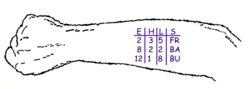 Swimmers should write their events on their arm in the format pictured below. You can find this information in the heat sheet on the day of the swim meet. Please apply sunscreen before arriving to the pool to give it time to absorb before applying sharpie. For younger swimmers who may need help getting to their events, please write their name on their back.