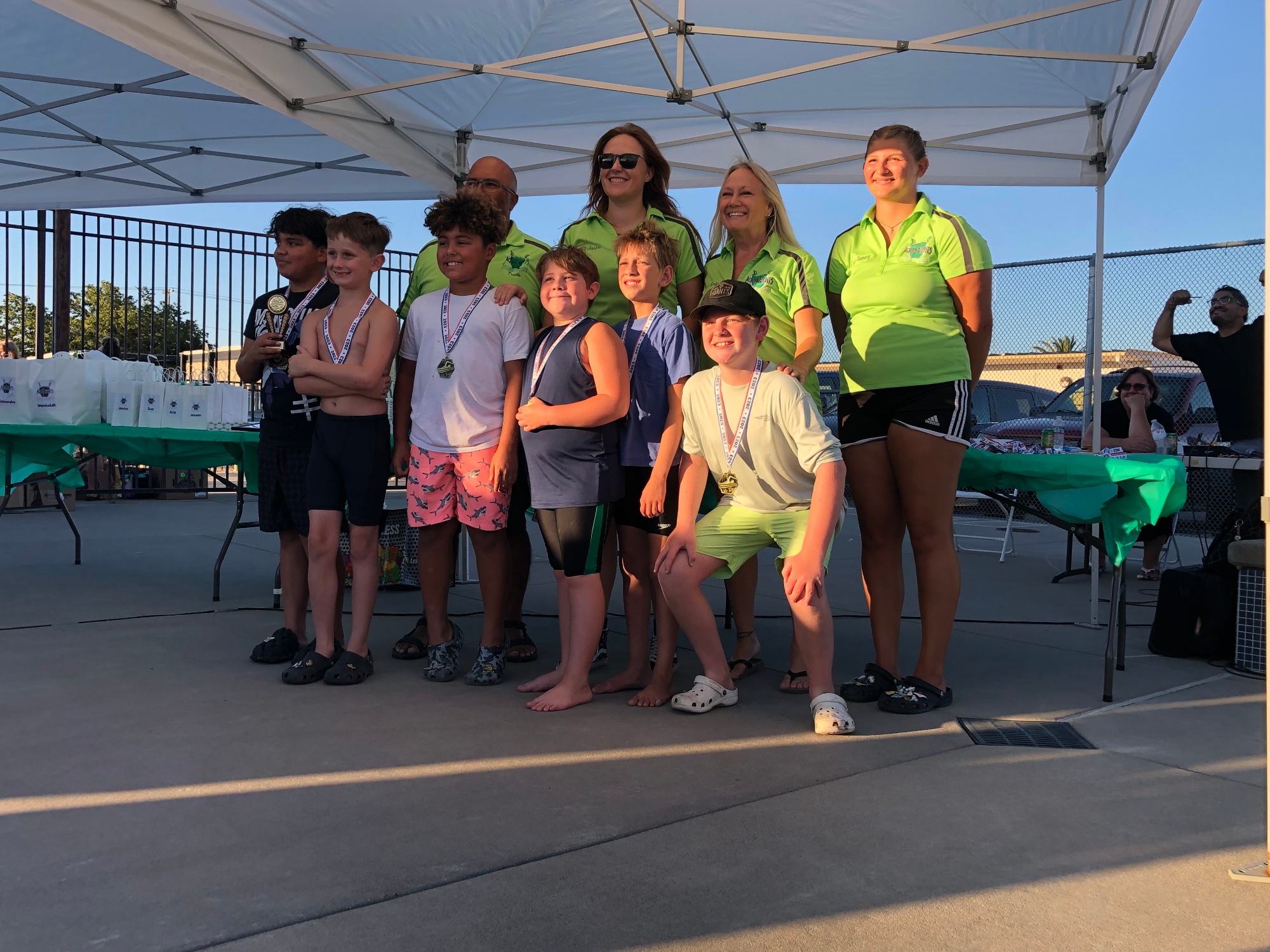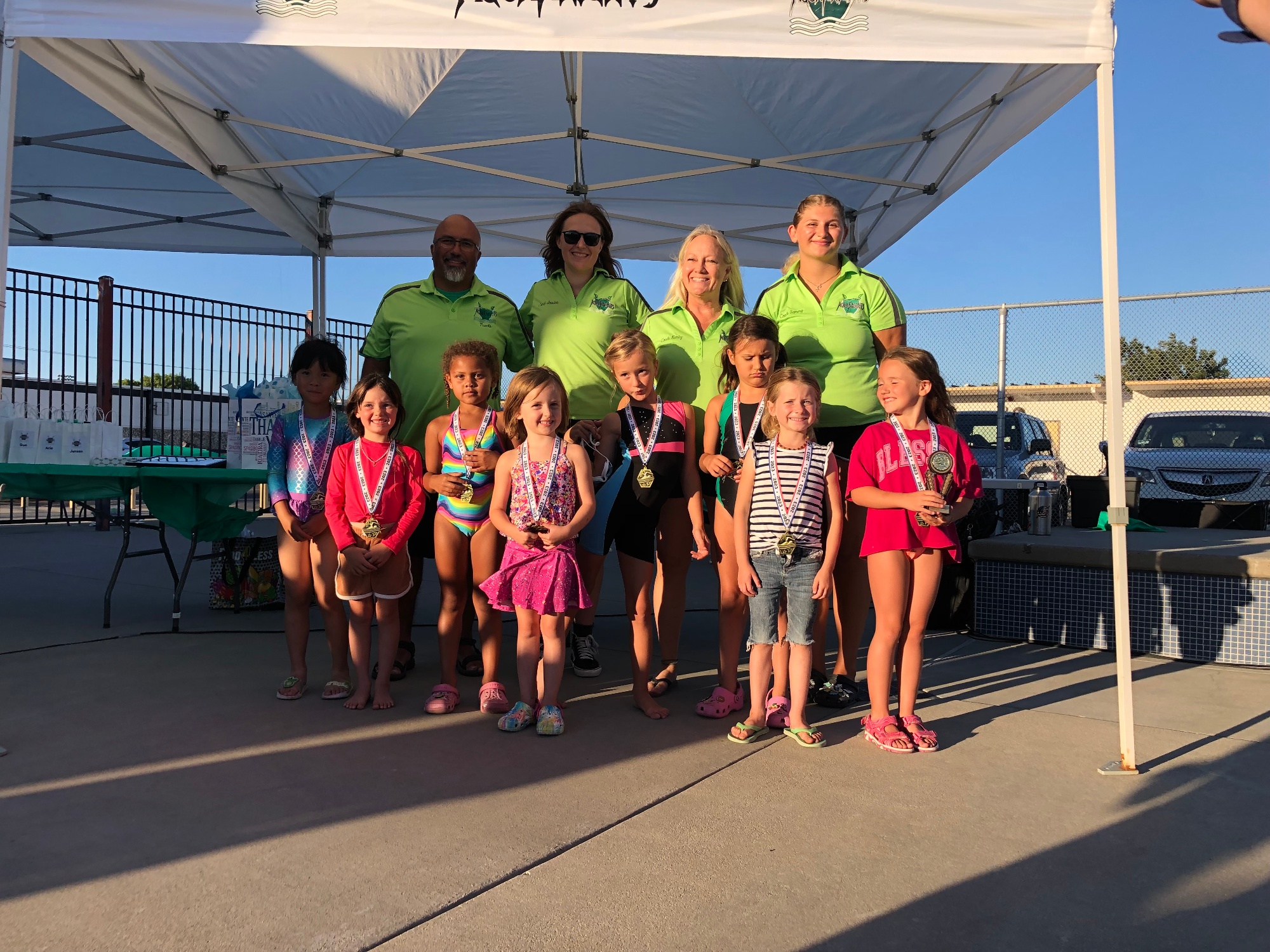 By joining the AquaKnights Swim Team, your child will gain life long swimming skills, learn sportsmanship in a supportive team environment, and have an opportunity to experience safe and fun challenges both in and out of the water. Parents and families are an essential and mandatory part of the swim team in assisting with swim meets and team events.