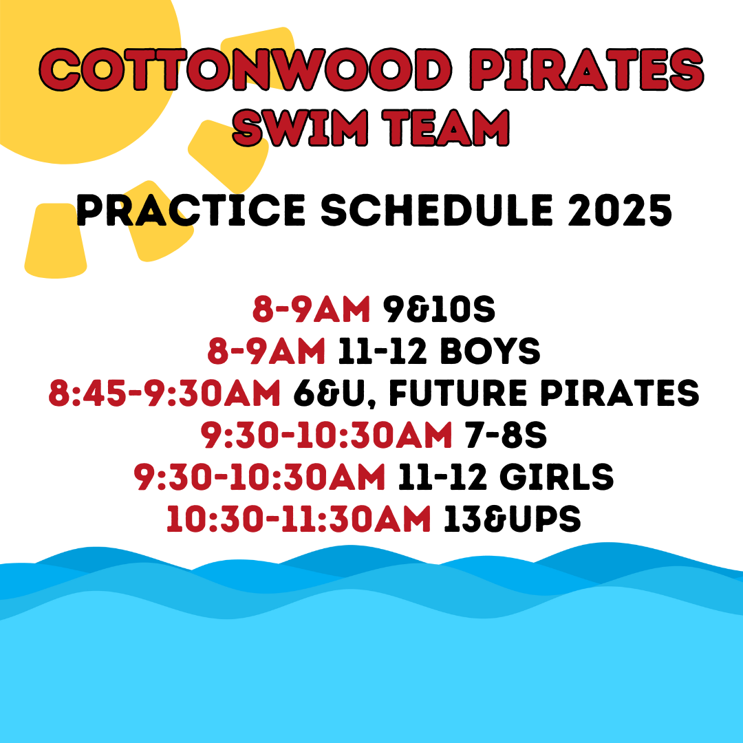 Pirate Rule to Remember: No parents or children who are not swimming will be allowed on the pool deck during practice hours! Swimmers 8 and under need to have a parent or designated adult present during practices and meets.
