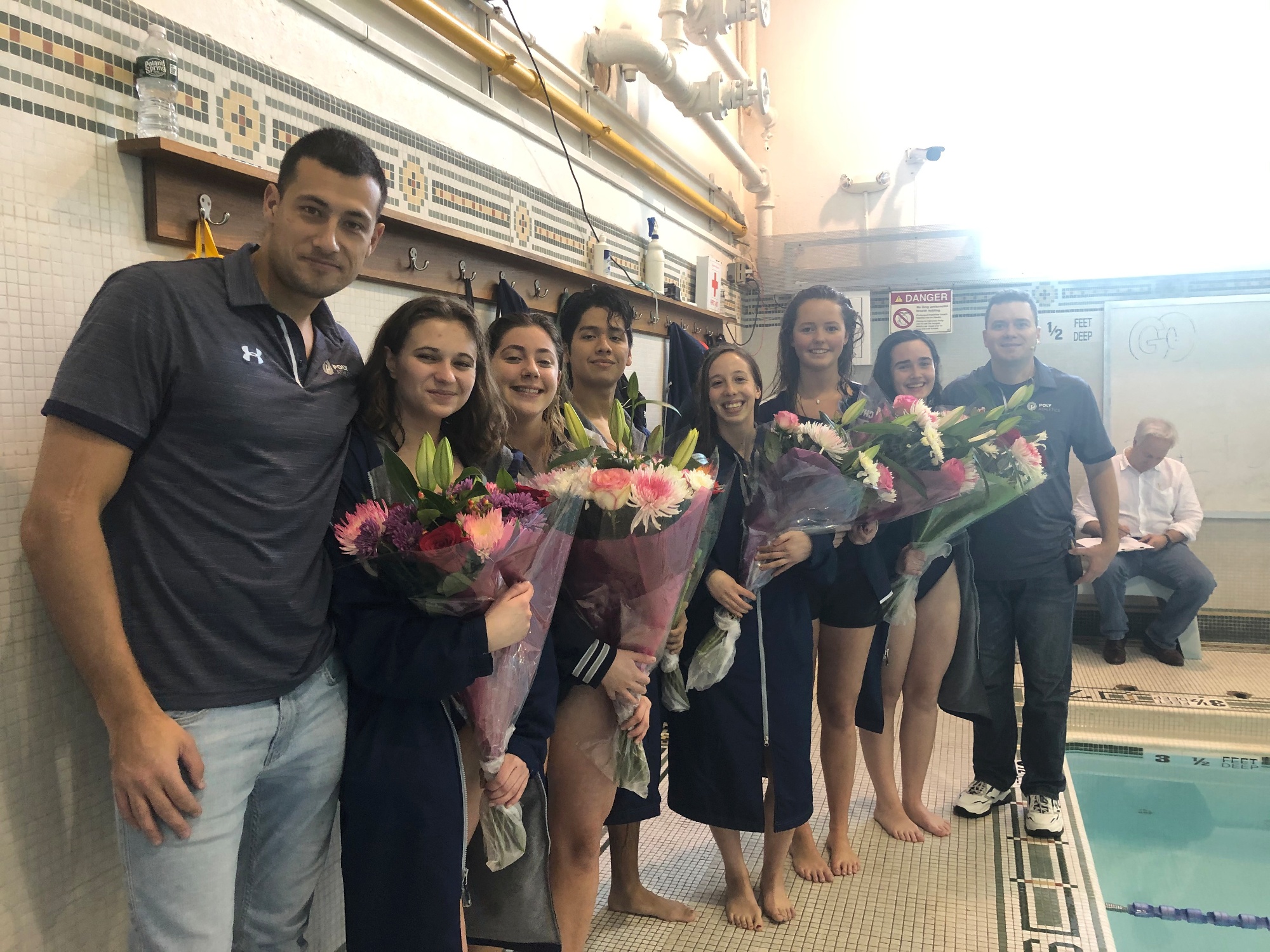 dual meet against Dalton. The meet began with Poly prep team recognizing their graduating Seniors. For the first time, this season, the girl’s and boy’s squads both came out on top.