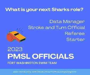Stroke and Turn training options are offered tonight, Saturday, or Tuesday. Ref/Starter training options are Saturday or Thursday. Parents, please consider joining some of our other volunteers as certified meet officials. Don't put this off as the season is around the corner and training options are limited. PMSL has announced the schedule for online officials’ training for 2023. No need to leave home for these classes! The more certified officials the Sharks have, the more the team can flexible when assigning Shark parent volunteers across events. In addition to registering...
