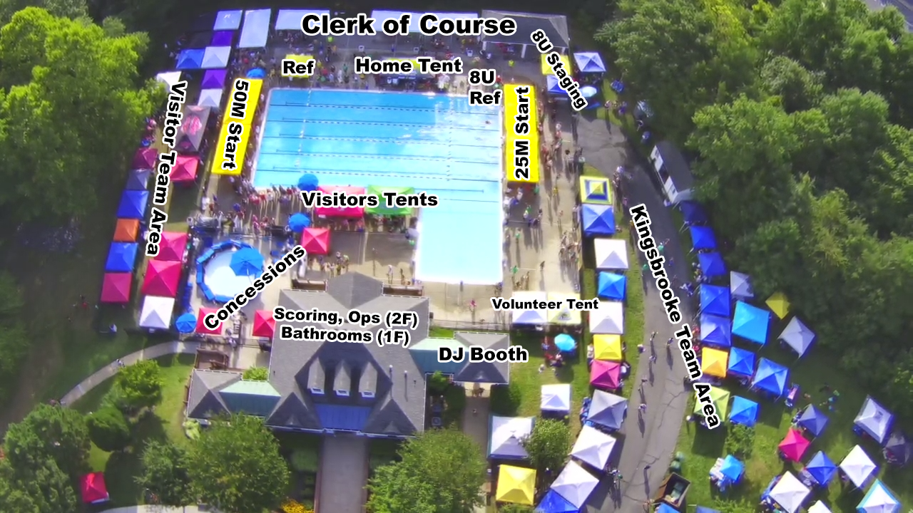 Please bring your starting equipment, computer and printer (as a backup). Your head timer should also bring adequate stop watches to supply your team’s timers. Please note that Kingsbrooke does not supply tents for visiting coaches, team members, or guests. If you would like for your coaches to have a tent on deck, you will need to provide it for them. Each Team should also provide their own camp chairs for the meet. Our pool supply is unavailable for use.