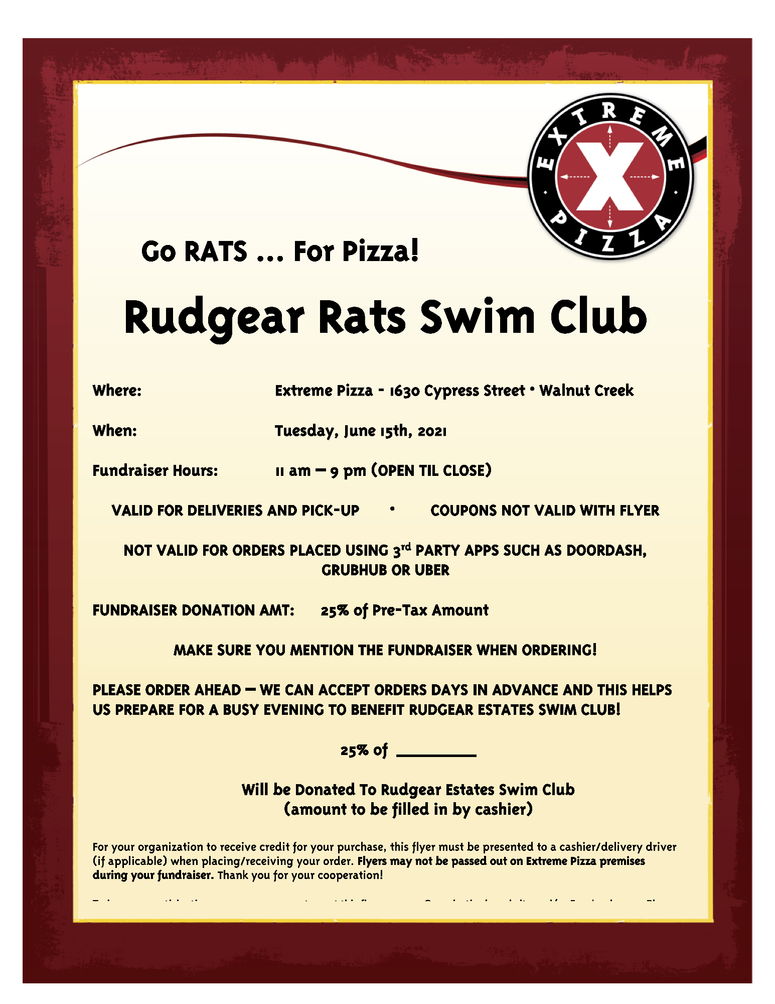 Where: Extreme Pizza, 1630 Cypress Street, Walnut Creek