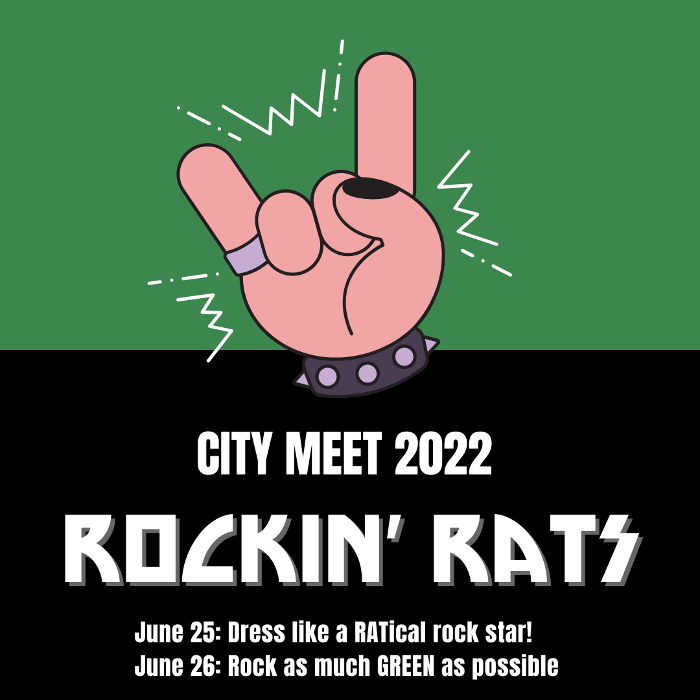 Our first two-day meet is coming up this weekend! And our theme is… ROCKIN’ RATS!! On Saturday, come decked out as the most RATical Rockstar. And on Sunday, come rocking all the green! Parents, make sure you get in on the fun, so we can show the Walnut Creek teams that Rudgear has the most spirit!