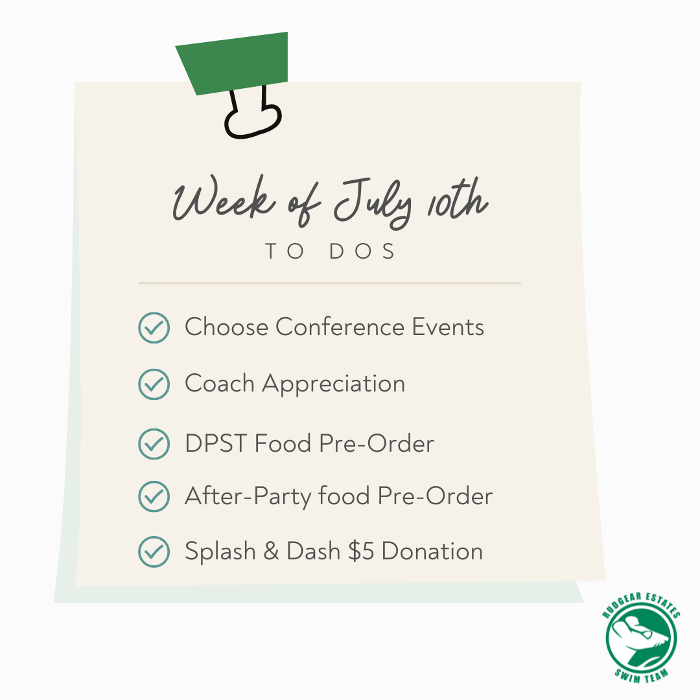 If you have a swimmer swimming in Conference you must sign up for a work a job at Conference (15/18 families included). Job sign-ups will open on July 13th and will close end of day on July 17th. If you do not sign up for a job, your swimmer(s) will not be able to participate in the meet.