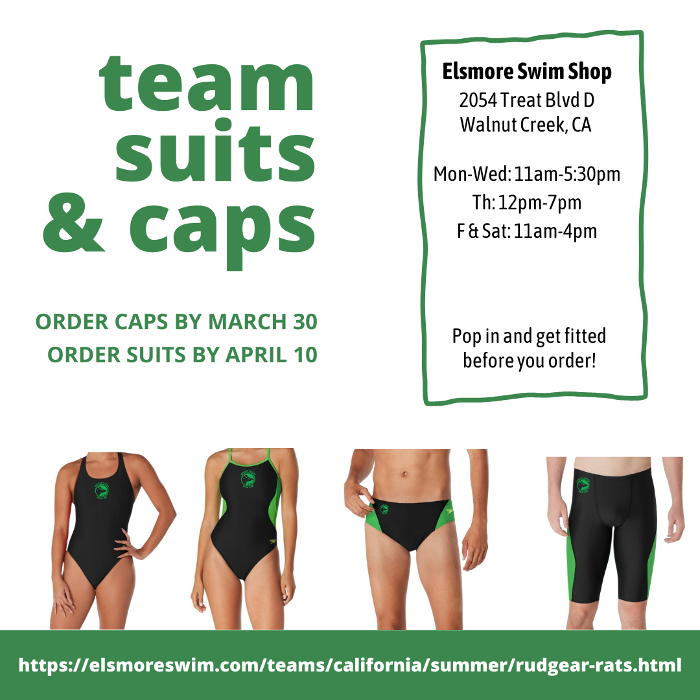 It’s time to order team suits and caps. We are working with Elsmore this year and we are confident that we will actually receive everything we order. Please be sure that you head down to Elsmore to get your swimmer(s) fitted before you order. Order everything by March 30th and you’ll be set!