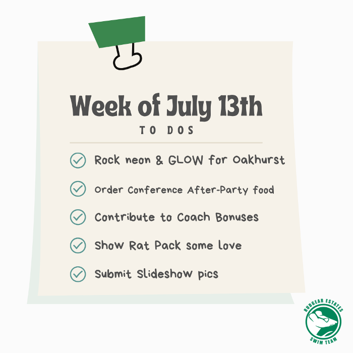 If your swimmer is participating in Conference you must sign up for a job. Please sign up by July 15th at 10:00am. Coordinating everything for Conference is a heavy lift for our board members – if all our team families do their part on time it lightens the load and we truly appreciate it. Thank you.
