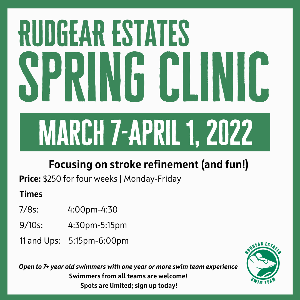 Who's ready to Bleed Green? 2022 registration is now open for both spring clinic and the swim season! Spring clinic is open to all swimmers, ages 7+, with at least a year of swim team experience - including swimmers from other teams. (Please feel free to share the attached flyers with your friends from other teams, as not every team will be hosting a spring clinic.) Remember to register for the season by the first day of pracitce (April 11th), so your swimmer can snag a free team shirt. Also,...