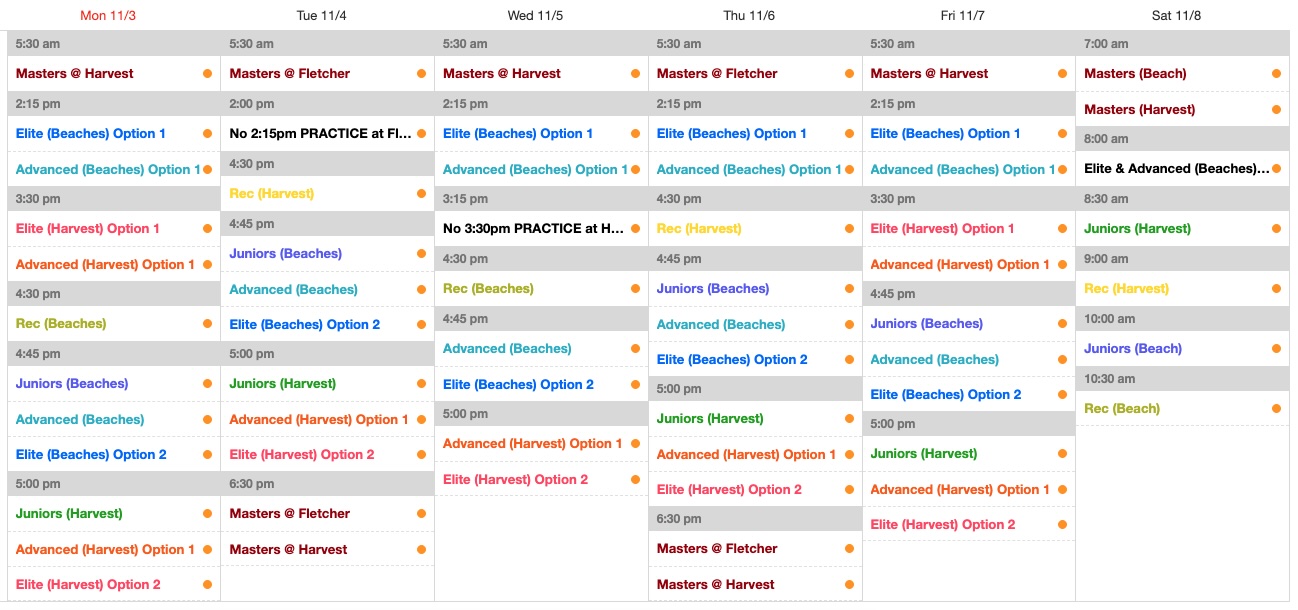 IMPORTANT: Check what our week looks like below. TAP ON the picture below so see it better. You can also check our live calendar since there will be some days that we are not having practice.