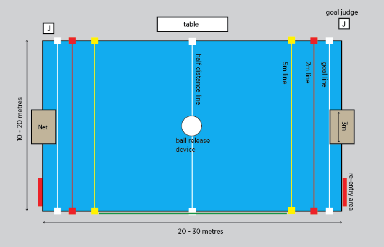 5 meter line: If a defensive player commits a foul inside of the 5meter line which prevents a “probable goal,” the defensive player is charged with a penalty (personal) foul and the opposing team is awarded a penalty throw (a “5meter”). If an offensive player is fouled outside of the 5meter line, the offensive player may pick up the ball and take an immediate shot at the opponent’s goal (i.e., two players do not have to touch the ball before a goal can be scored).