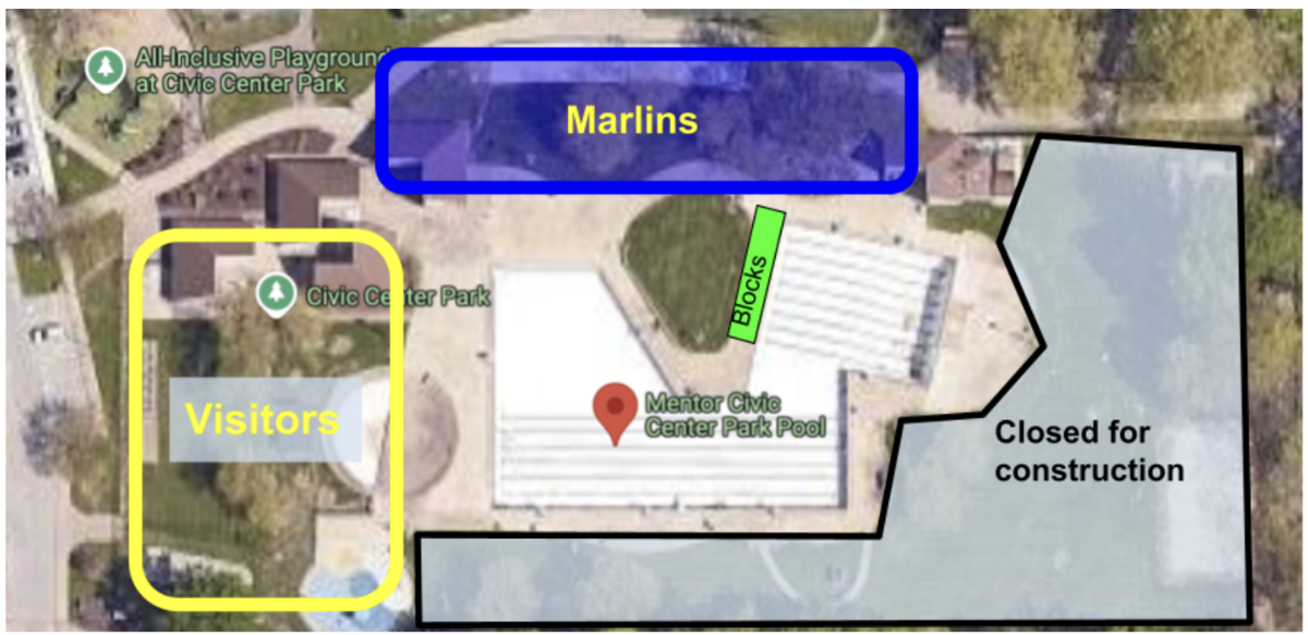 Stay off of the grass in Mentors pool area as they are remodeling the facility.