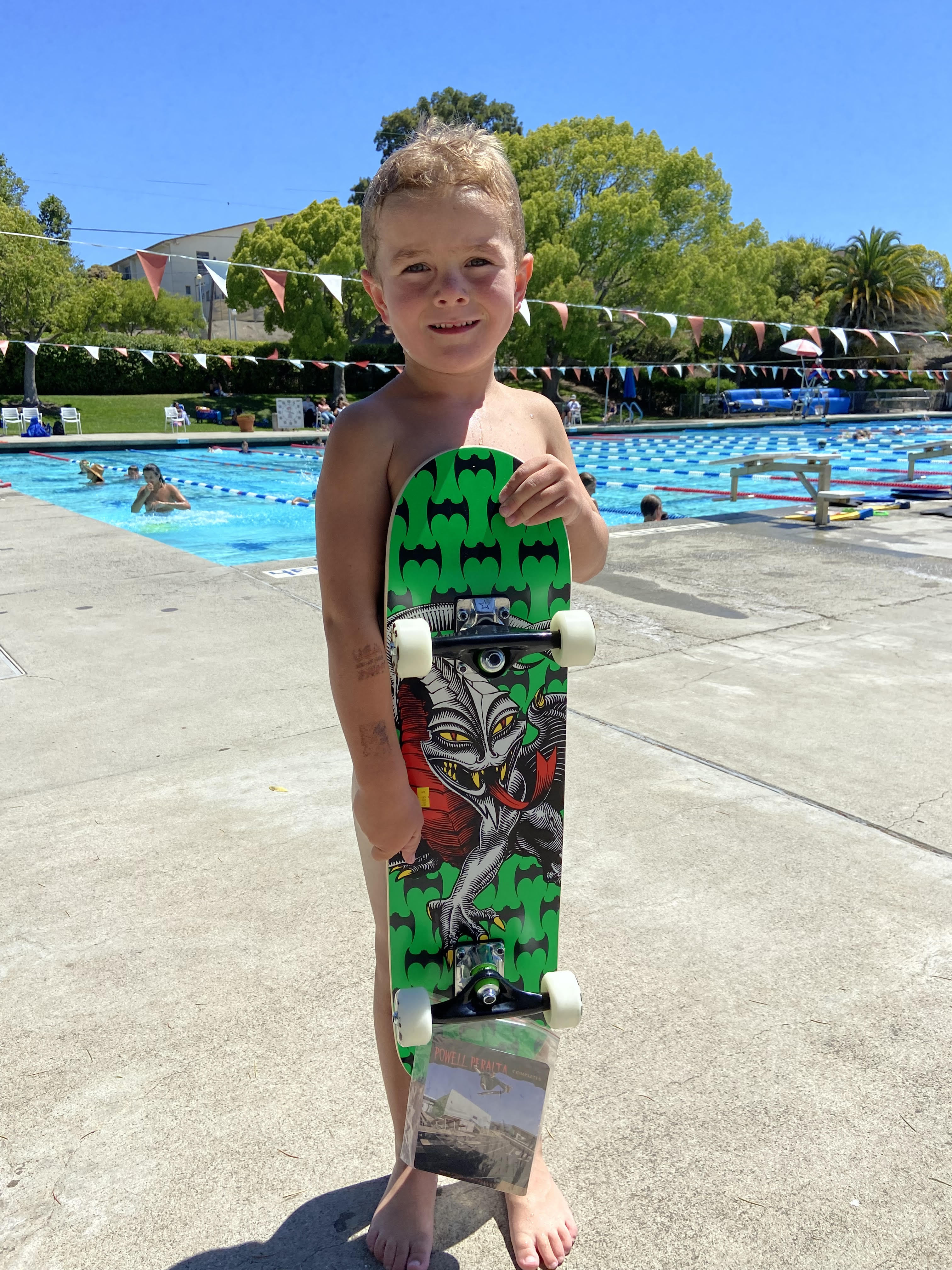 - Raffle: There will be a raffle with tickets for $1 each or 6 for $5. Prizes will include gift cards and this brand-new skateboard, generously donated by Wheels In Motion