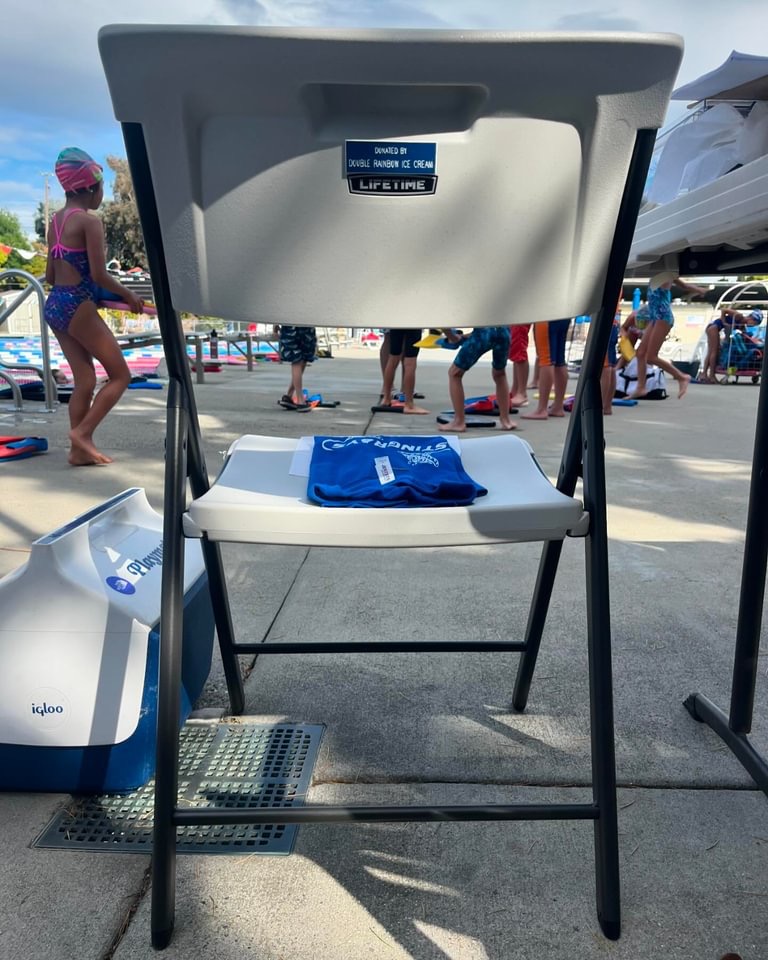 - Double Rainbow has sponsored our first chair (see below). Your family can also sponsor the purchase of a chair (for $100) to have your name, your swimmer's name, or your business name on the chair for all of eternity. What a great way to support our team and to say thanks to your swimmer for all of their hard work!