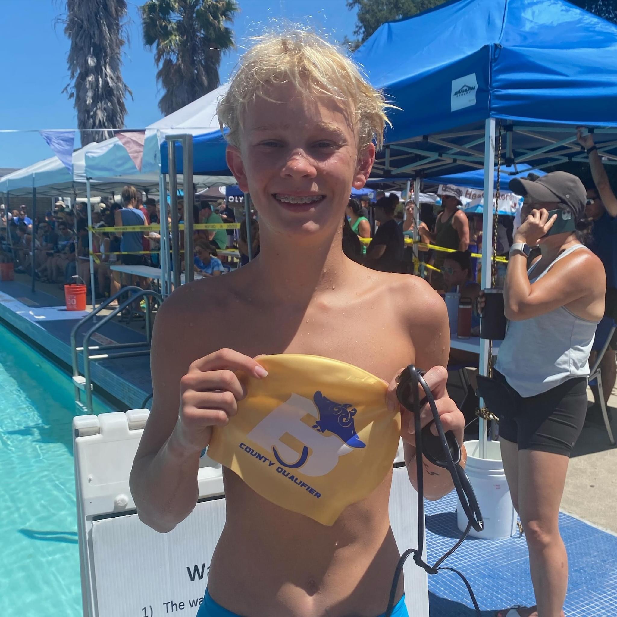 AND, Congratulations to Apollo Ambrose (12), who earned two County times in breaststroke and butterfly and to Caden Clements (12) who got his first ever County time in backstroke!!!! Also, congratulations to Evan Magno (14) who improved all four of his County Times, won backstroke, and was runner up high point for his age group.