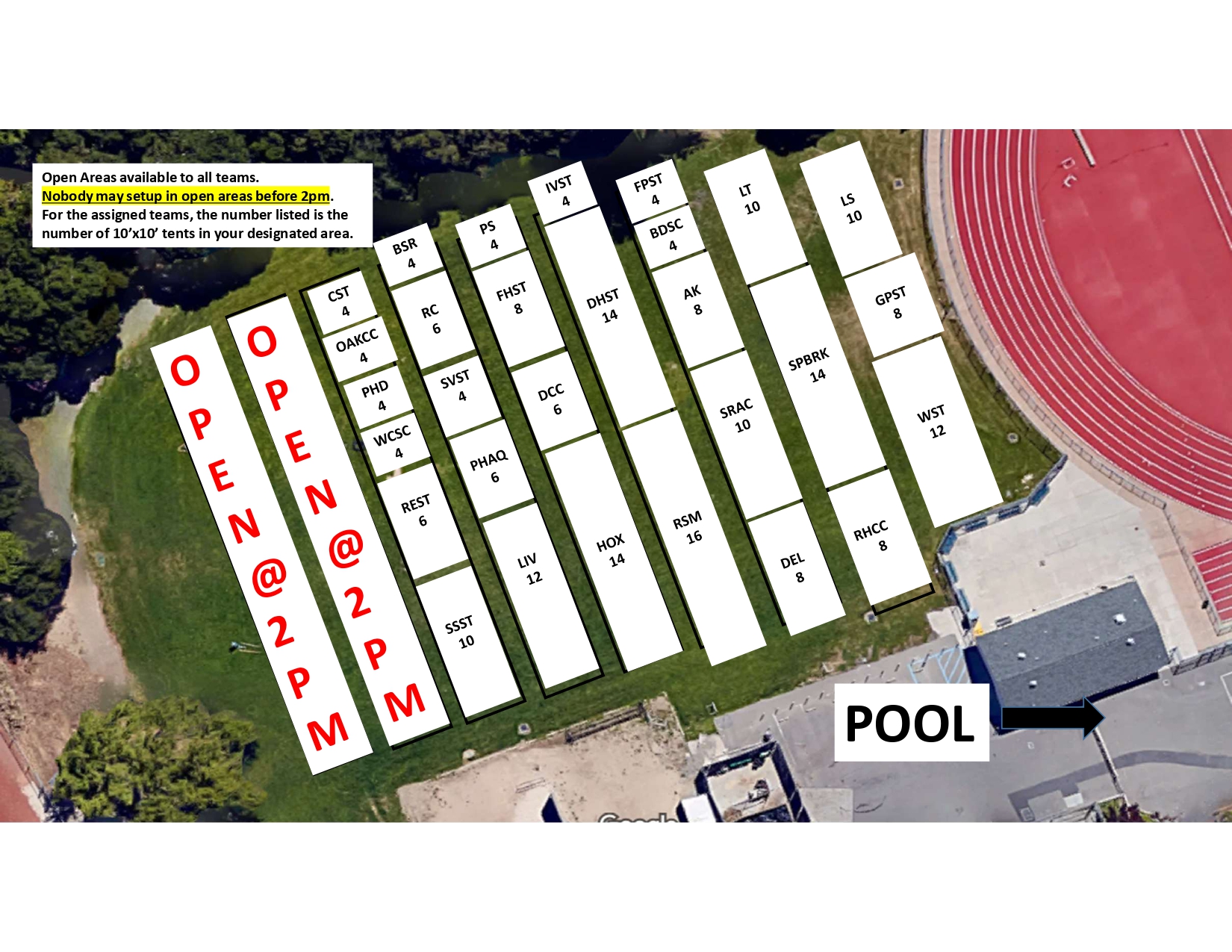 -Team Area Map with location and how many 10'x10' tents your team is allocated.