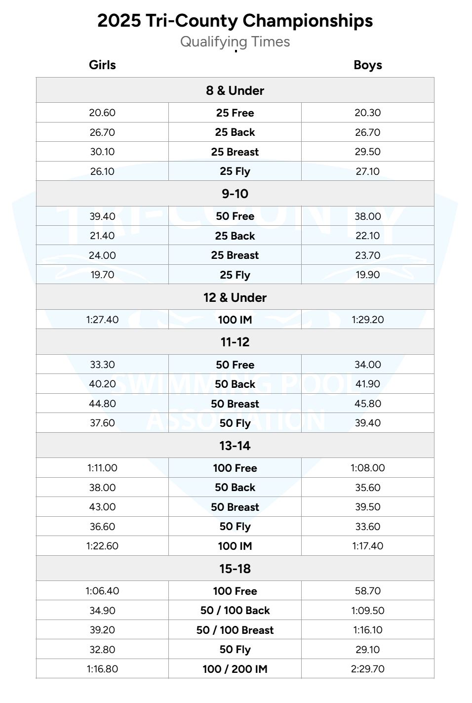 *Tri-County Championship- Saturday 8/2/25 & Sunday 8/3/25- @ Pomona Swim Club