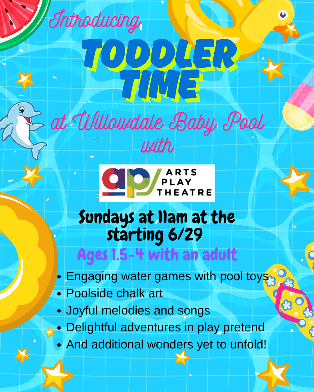 Willowdale is excited to announce a new collaboration with Play Arts Theatre! Dawn Navarro, a WSC Member, will lead Toddler Time each Sunday at the Baby Pool!