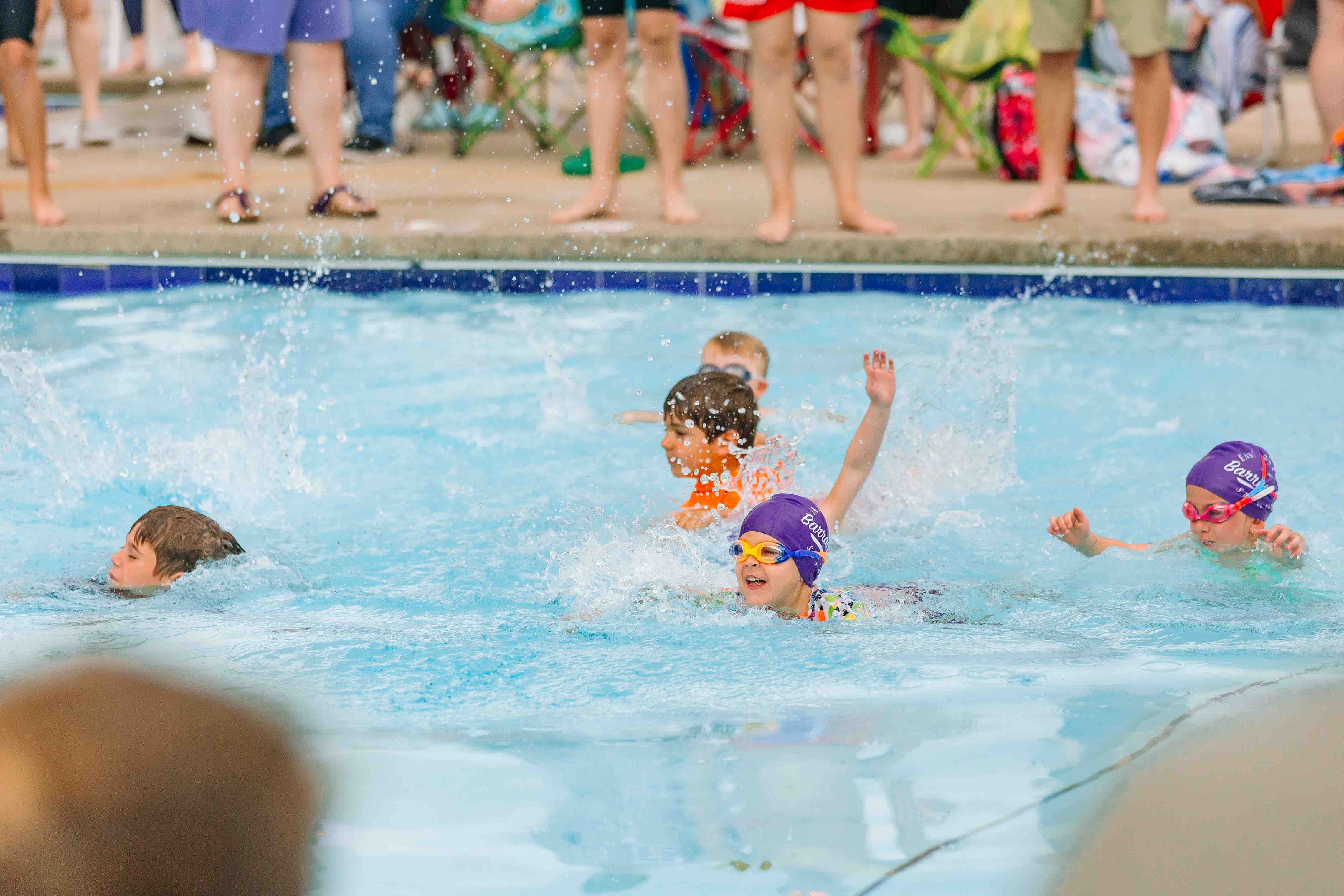 At our first home meet of the season, we competed with the Broadway Sharks. Overall our team had 212 individual races and 81 of those were BEST TIMES!!! Add in all the relays, and there was a lot of water splashing! Our Jr Barracudas had a chance to start us off with a quick swim in the shallow end!