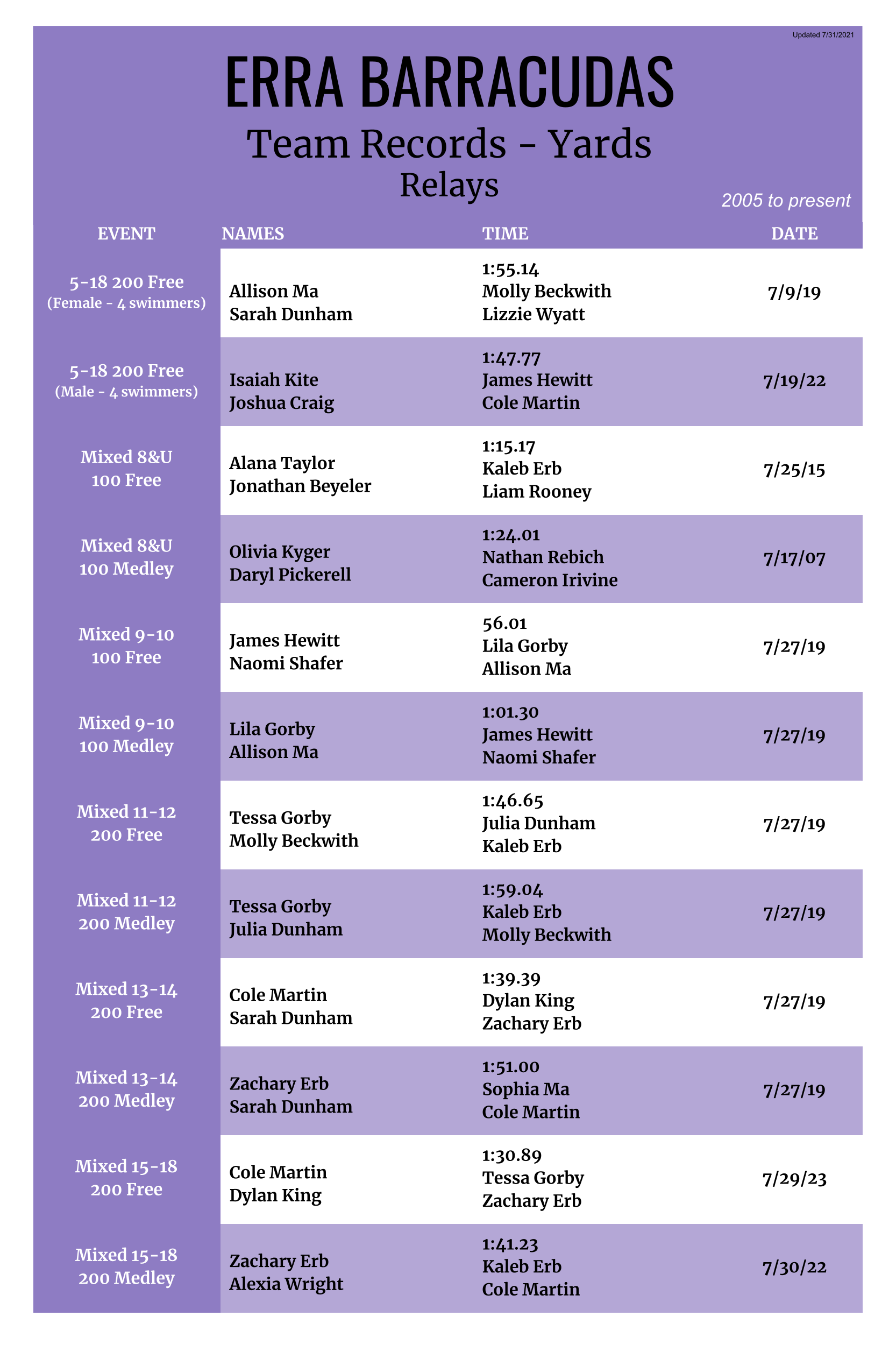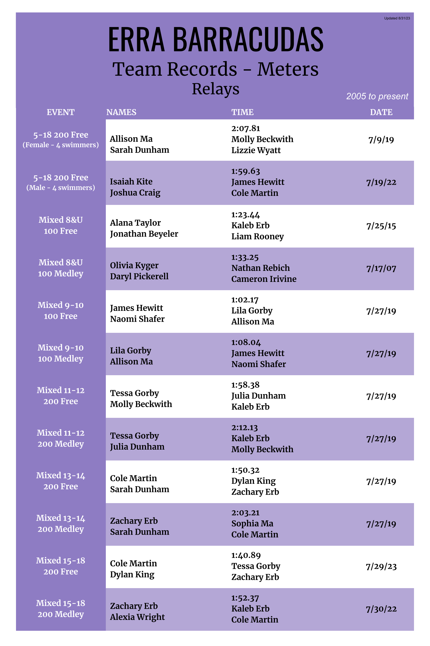 Team Relays, Yards (08/24) |