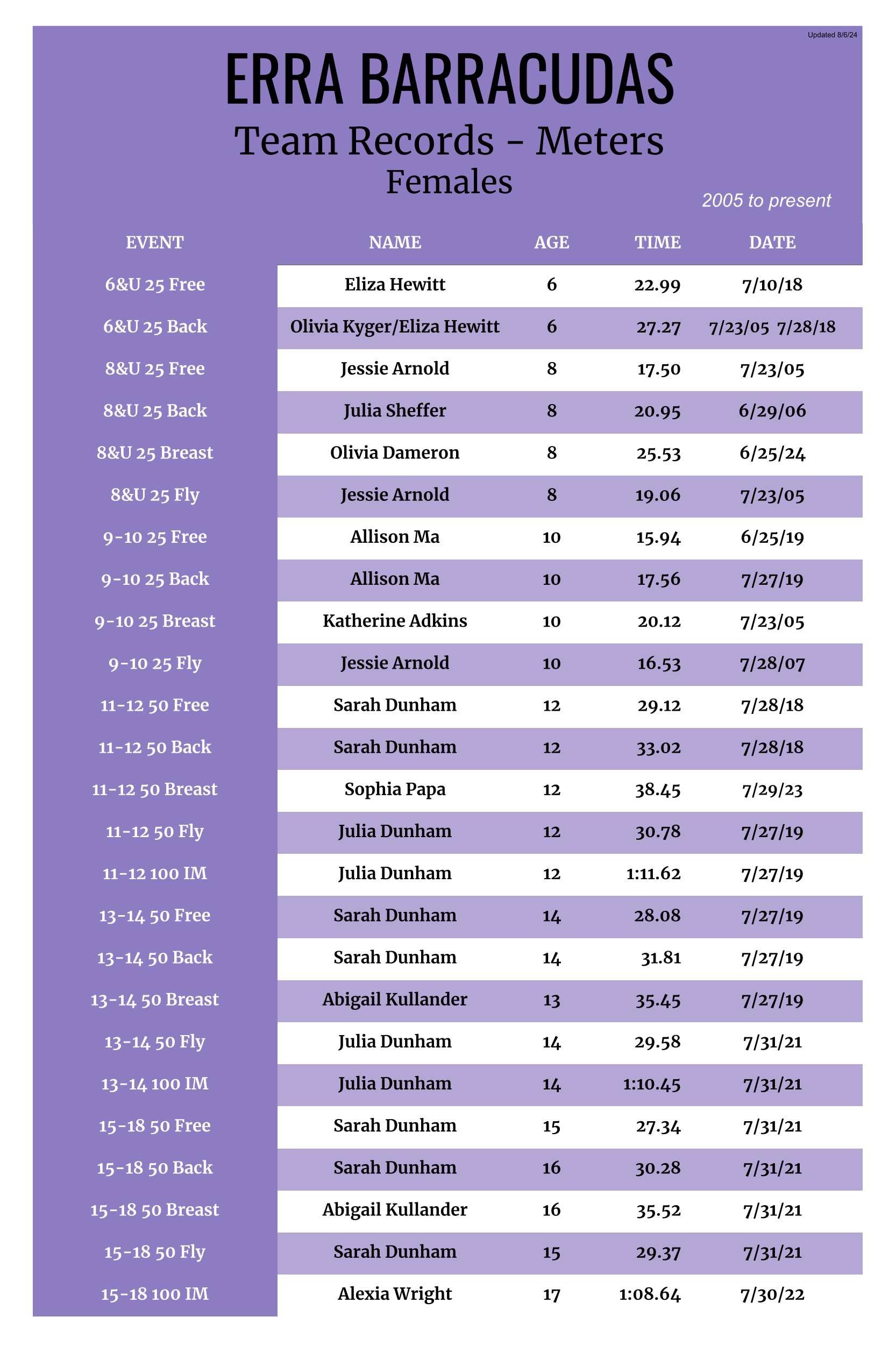 | Girls Individual, Meters (08/24) |