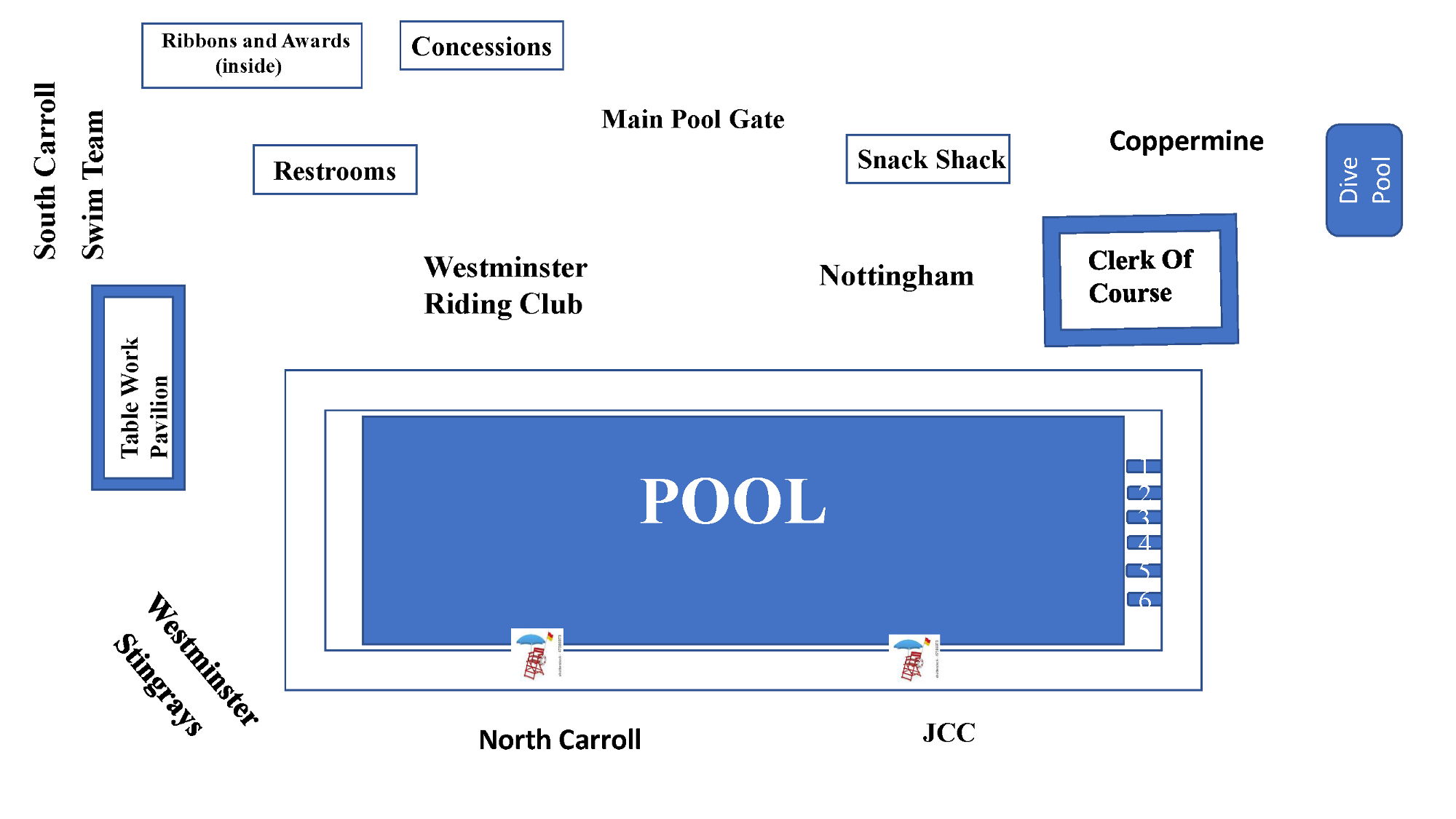 Junior Champs: See attached map for seating at Westminster Riding Club (366 N. Colonial Ave). Warm-ups begin at 3pm, please check in with a coach by 2:45pm. We have been asked NOT to show up until after 2:30pm. They need time to close their pool and prepare for the meet. The meet will begin at 4pm.