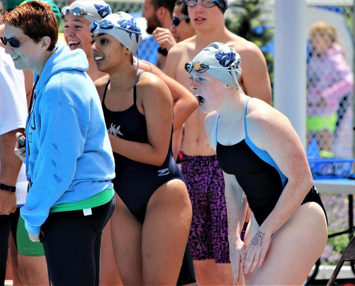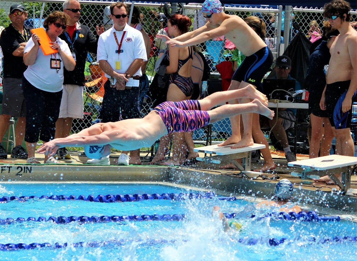 The 12-hour event featured swimmers from age 5 to 18, as well as an exhibition coaches relay, a highlight of the day.
