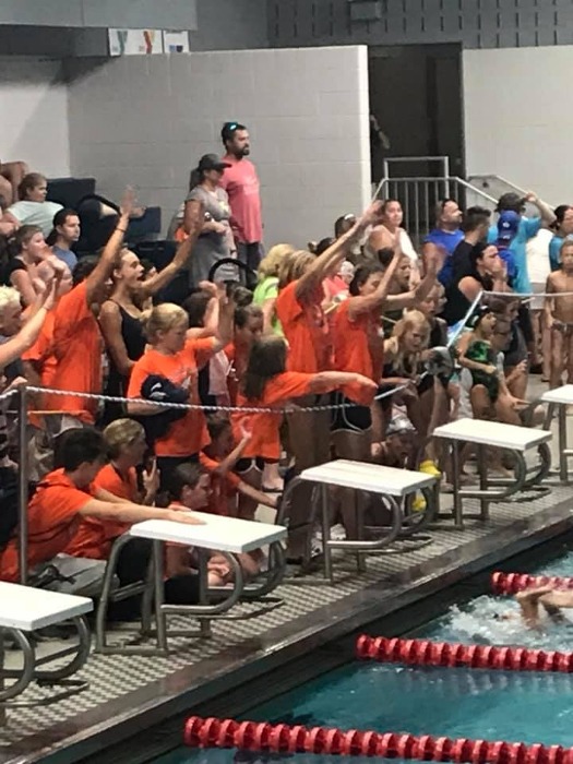 As soon as the starter beep sounds and the lead swimmer dives in, the crowd erupts in cheers. The noise steadily grows louder with each leg of the race.