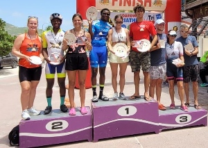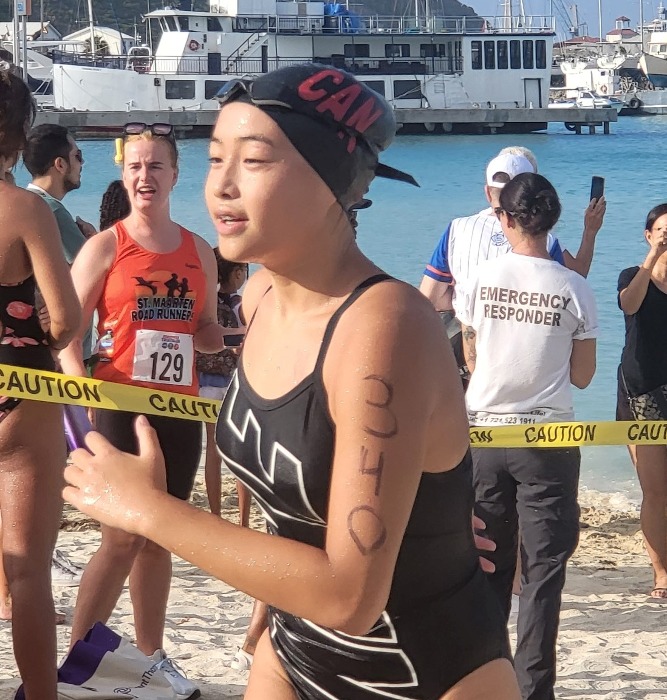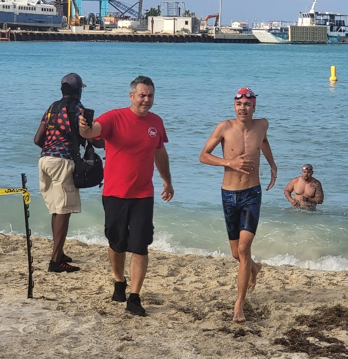 In the sprint relay event (750 meters for the swimmers), Gigi Cai helped her team (Team Saba and SXM) to the top of the podium. Nicolas Piazza was the first out of the water, and his team (Youth Power) finished second. Brandon Girier Dufournier lead his team to a third place finish.