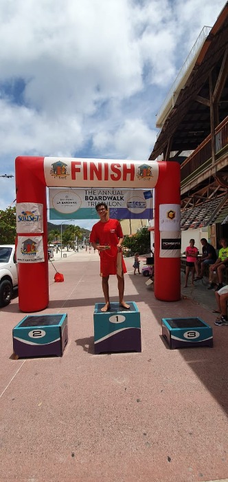 Several members of Carib Swim Team took part in Sunday's Boardwalk Triathlon, and performed admirably. Participating were Al-Sheenia Wilson, Arianna Lont, Adriaan Coppelmans, Matias Piazza, Nicolas Piazza, Taffi Illis, Abbi Illis, and Coach Eline Broer.