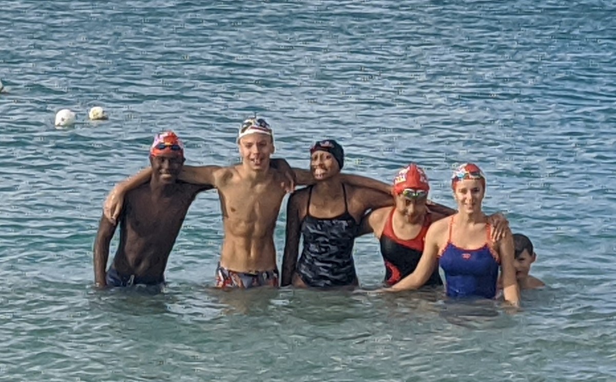 Members of CST's Senior and Age Group 1 groups attended their first open water practice of the year at Divi Little Bay Beach. The session was a tough one, but Brandon, Joey, Arianna, Gigi, Louise, and Simon made their way nicely!
