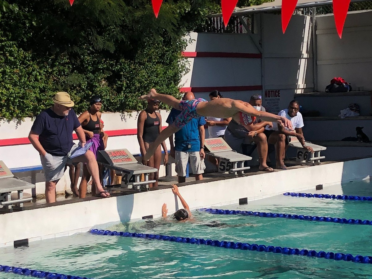 Carib Swim Team ran a fun relay meet, replacing the postponed school meets. It was an intra-squad afair, featuring unusual relays such as a corkscrew relay, a 'last minute' medley relay, an IM relay, and more. Many of the relays were multi-age-group, allowing the younger swimmers to compete with the older swimmers.