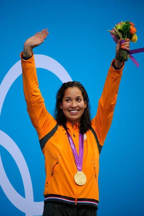 Ranomi Kromowidjojo is a four-time Olympic medalist. Her first gold medal came in the 2008 Beijing Olympics, as part of the Dutch 4 x 100 free relay. She added three more medals in the 2012 London Olympics, two individual golds in 50 free and 100 free (both Olympic records at the time), and a silver medal in the 4 x 100 free relay. She also competed in the 2016 Rio games and the 2020 (actually 2021) Tokyo games.