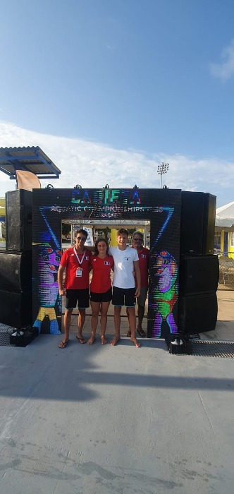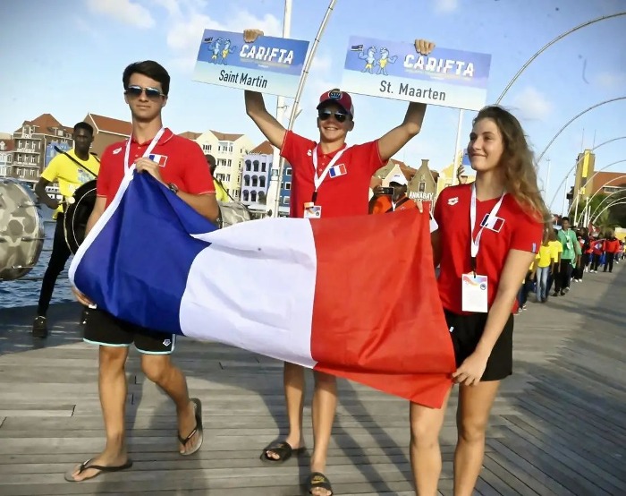 The St. Martin team at the 2023 CARIFTA games was composed of three CST swimmers, Saphir Thomas, Joey Schvartz, and Matias Piazza. Although a relatively small team, all three swimmers managed to score some final swims, even with Joey and Matias being at the bottom of their age group.