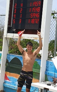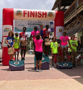 Several members of Carib Swim Team took part in Sunday's Boardwalk Triathlon, and performed admirably. Participating were Al-Sheenia Wilson, Arianna Lont, Adriaan Coppelmans, Matias Piazza, Nicolas Piazza, Taffi Illis, Abbi Illis, and Coach Eline Broer. Matias was the fastest swimmer overall in the 1.5KM swim, helping his team to a second place finish. Adriaan competed in the full traithlon, finishing 1st in the prejunior category. Way to represent CST!