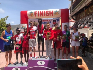 Four Carib Swim Team swimmers competed in the Le défi des Antennes Triathlon on the French Side on Sunday 1st May. The event was organized by Saint-Martin Extreme Runners. Each of the swimmers competed as part of a relay, so only did the 1K swimming leg. Matias Pizza was the first out of the water (11:32), followed by Saphir Thomas (12:03). Nicolas Piazza finished third in the swimming (14:21), and Brandon Girier Dufournier came out of the water sixth (14:40). Way to represent!