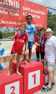 Carib Swim Team, for the second year in a row, dominated the Sint Maarten Aquatic Federation Championship Meet on Sunday 12th June. The meet was kindly sponsored by Marine Management and Consulting, and acts as an island wide ‘national’ championship for swimming. Carib Swim Team finished with 913 points, followed by Super Splash Swim Team with 170 points. Six CST swimmers combined for 19 team age group records, and 8 senior records (fastest swim ever for a CST swimmer, no matter what age)! Adaya Bourne (14 years) set new team...