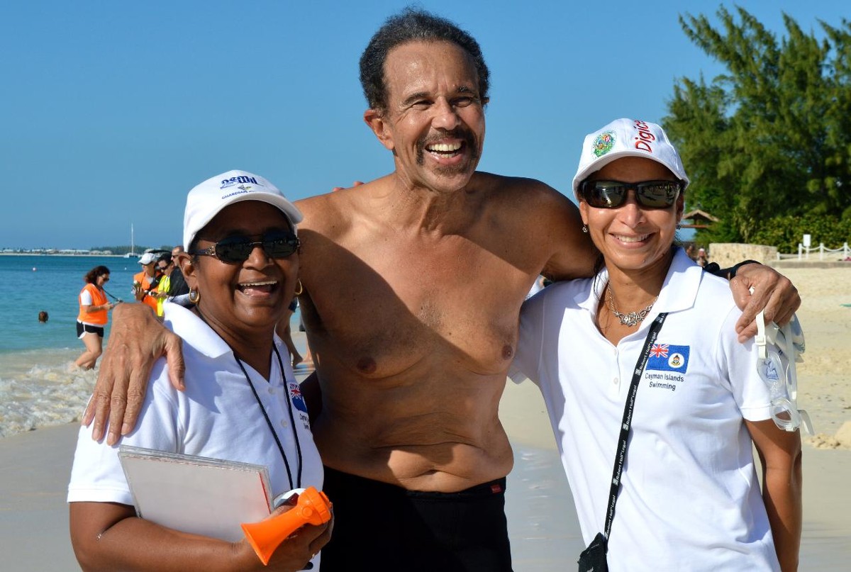 Olive, on the left, is pictured here with Open Water Pioneer Frank Flowers and Official Pat McCallum.