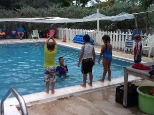 Visiting coaches were treated to a highly informative clinic yesterday morning and this was followed by a practical swim clinic for Special Olympians. Coach Annie from Washington DC, and our own Coach Paula Swaby, took the swimmers through the skills and drills necessary for successful Open Water Swimming. The swimmers will visit Governors Beach this morning to view the course and then take to the beautiful waters of 7 Mile Beach this afternoon for the Butterfield 800m Sea Swim. What a GREAT weekend for all concerned!