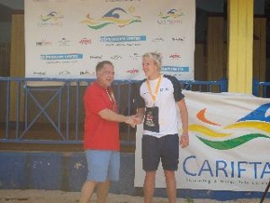 Geoffrey Butler continued his medal winning ways at the CARIFTA Championships in Jamaica but sneaking a silver medal in the 15/17yrs 200m Individual Medley. Day 3 looked like being a quieter day for the Cayman team with events not quite falling their way. However, Geoffreys silver plus PB's and 5th place finishes from Kavanagh Lambert in the 11/12ys 50m breaststroke and 200m IM, a 6th place from the 13.14yrs 4 x 200m freestyle team and a 7th place finish from Coral Tomascik in the 15/17yrs 100m freestyle (an improved Island...