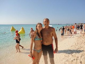 The first in the series of CBAC Sea Swims was a resounding success. The event, which took place off Governors Beach, began with a 200m Lollipop Dash for younger swimmers (won by Corey Westerborg) and was followed by a 400m event for more seasoned competitors. A family oriented event, many parents also took part.....including Coral Tomascik and her father (pictured); Coral placed 3rd in the 400m event behind race winner GB Olympian and Treasure Island Coach, Darren Mew. A good day was had by all! .