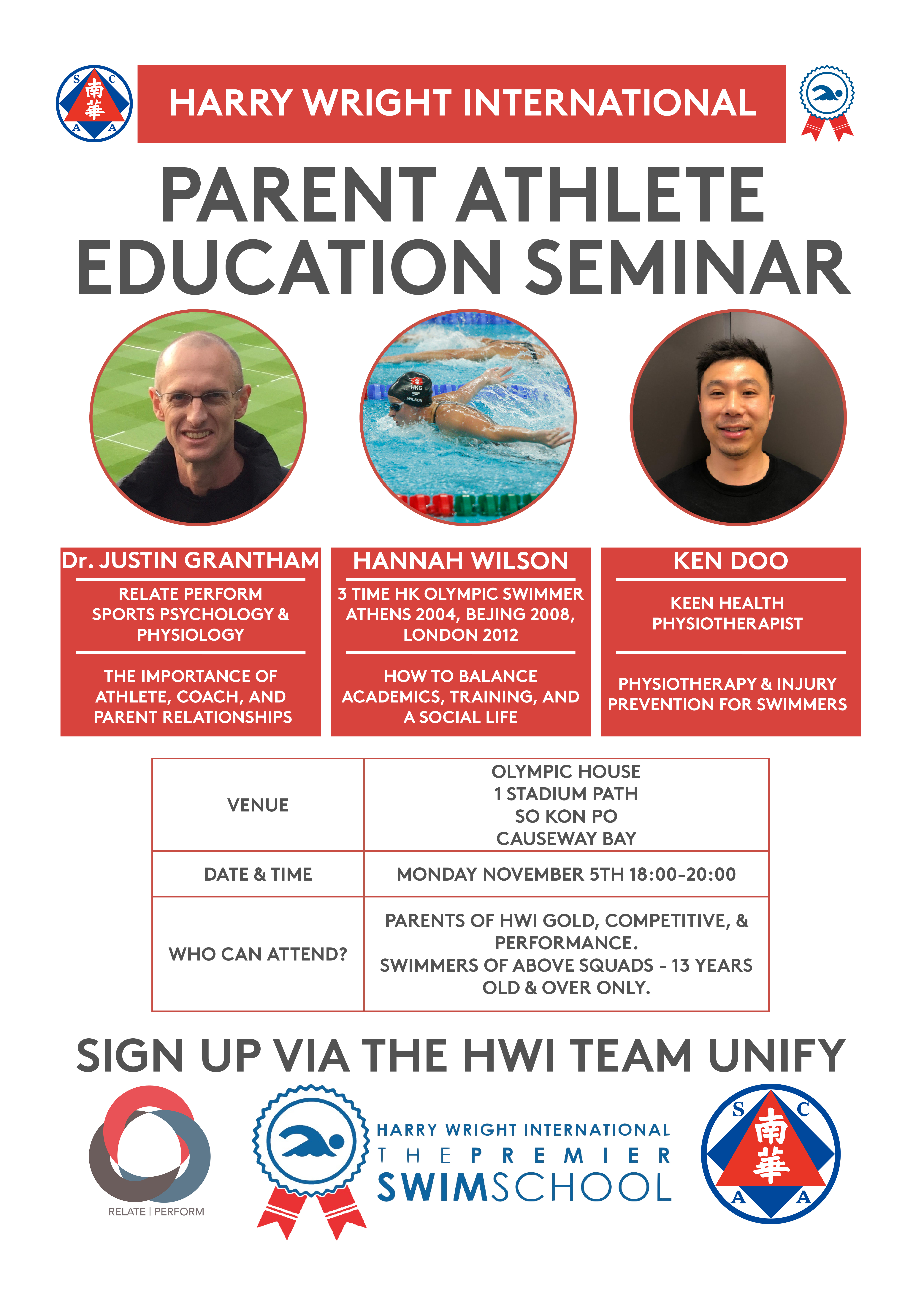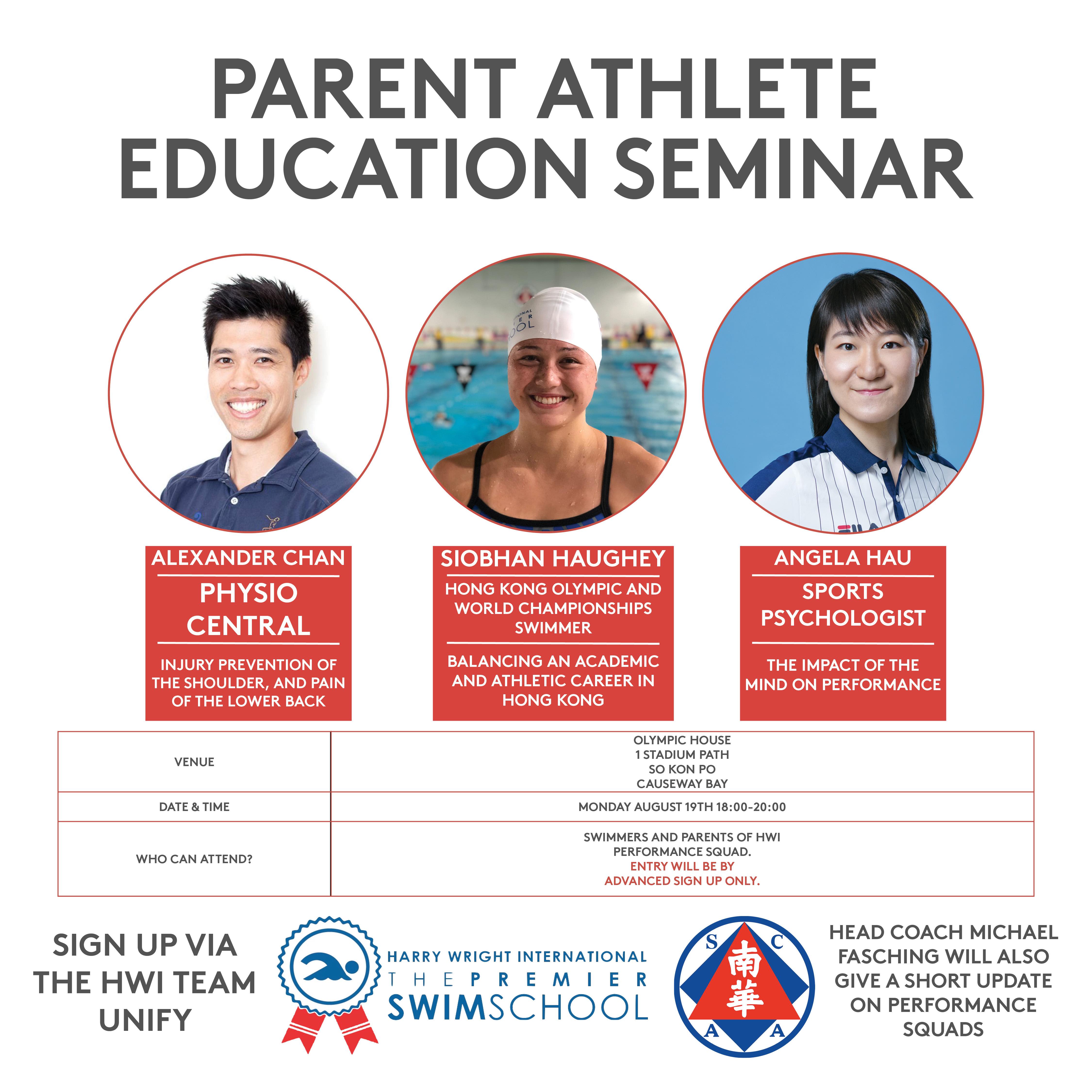 Our next Parent Athlete Education Seminar will take place on Monday August 19th 6:00-8:00PM