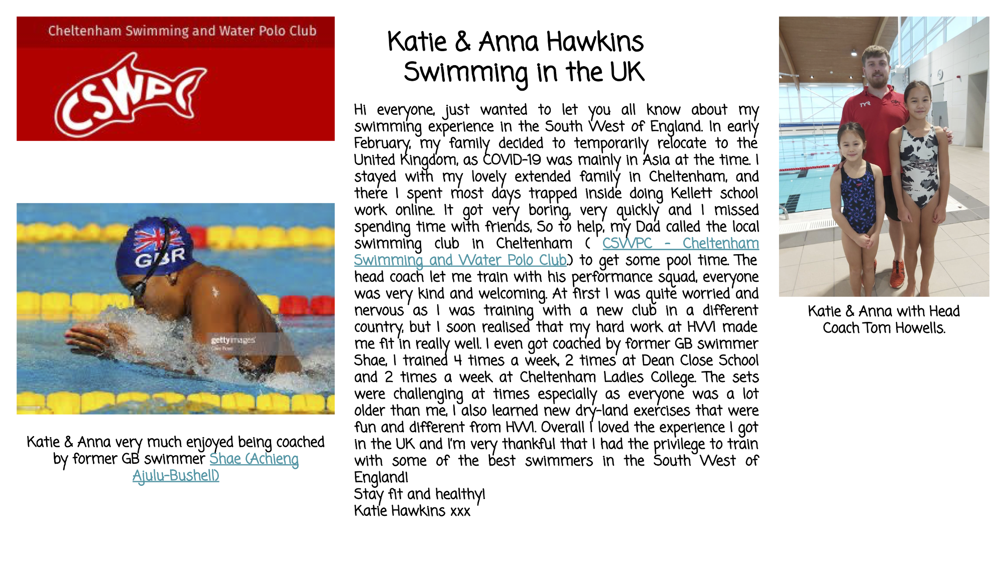 The Hawkins swimming in the UK - Cheltenham Swimming and Water Polo Club!
