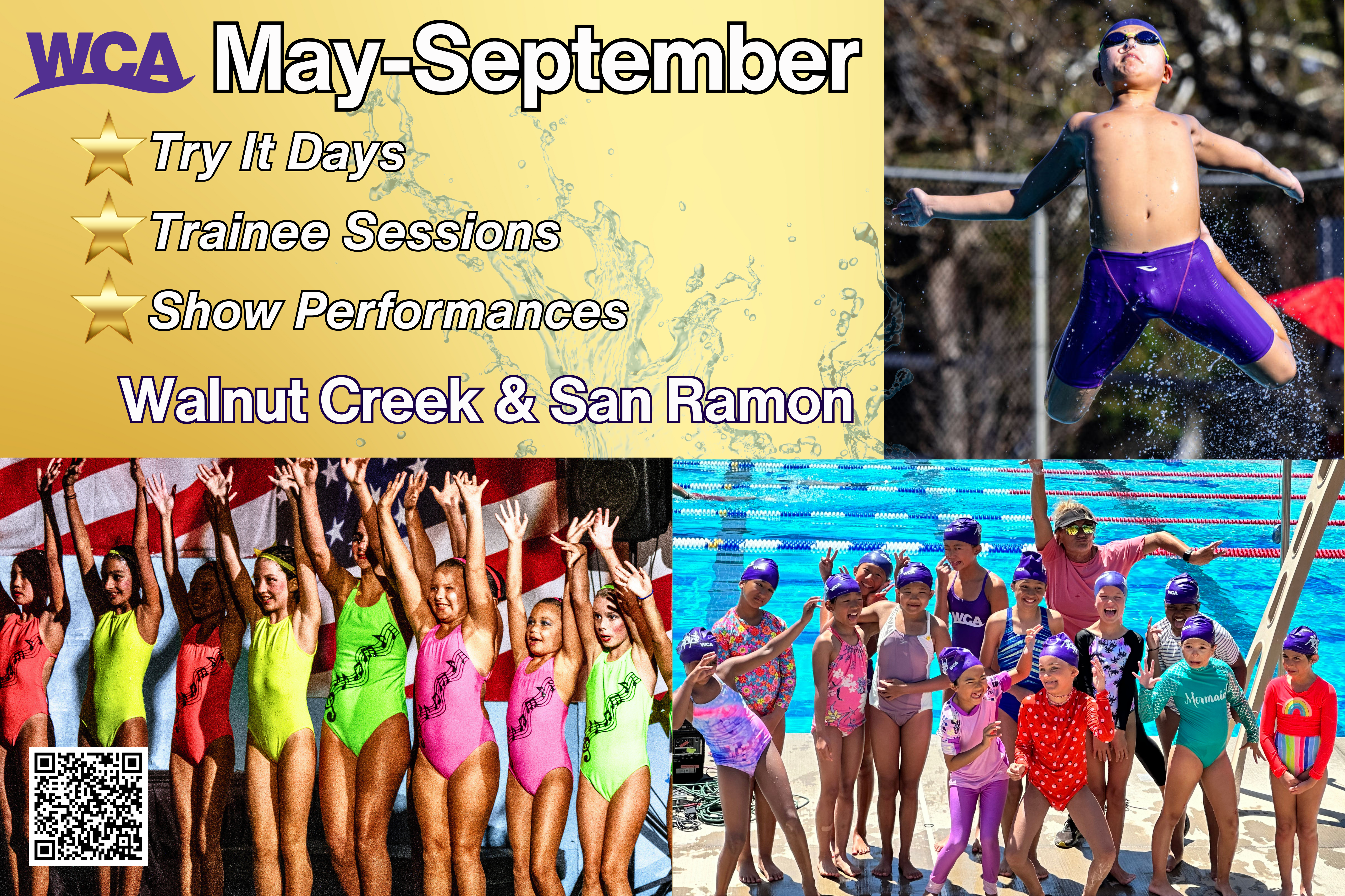 The Walnut Creek Aquanuts offer "Try It Days" as an introduction to the sport of synchronized swimming, now known internationally as 'Artistic Swimming'. They are designed to feed into our summer Trainee Sessions. Come see what it's like to be an artistic swimmer for a day!