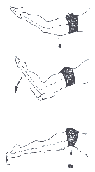 In the initial position, the swimmer lies on the breast, the arms are stretched to the front, and the legs are extended to the back.